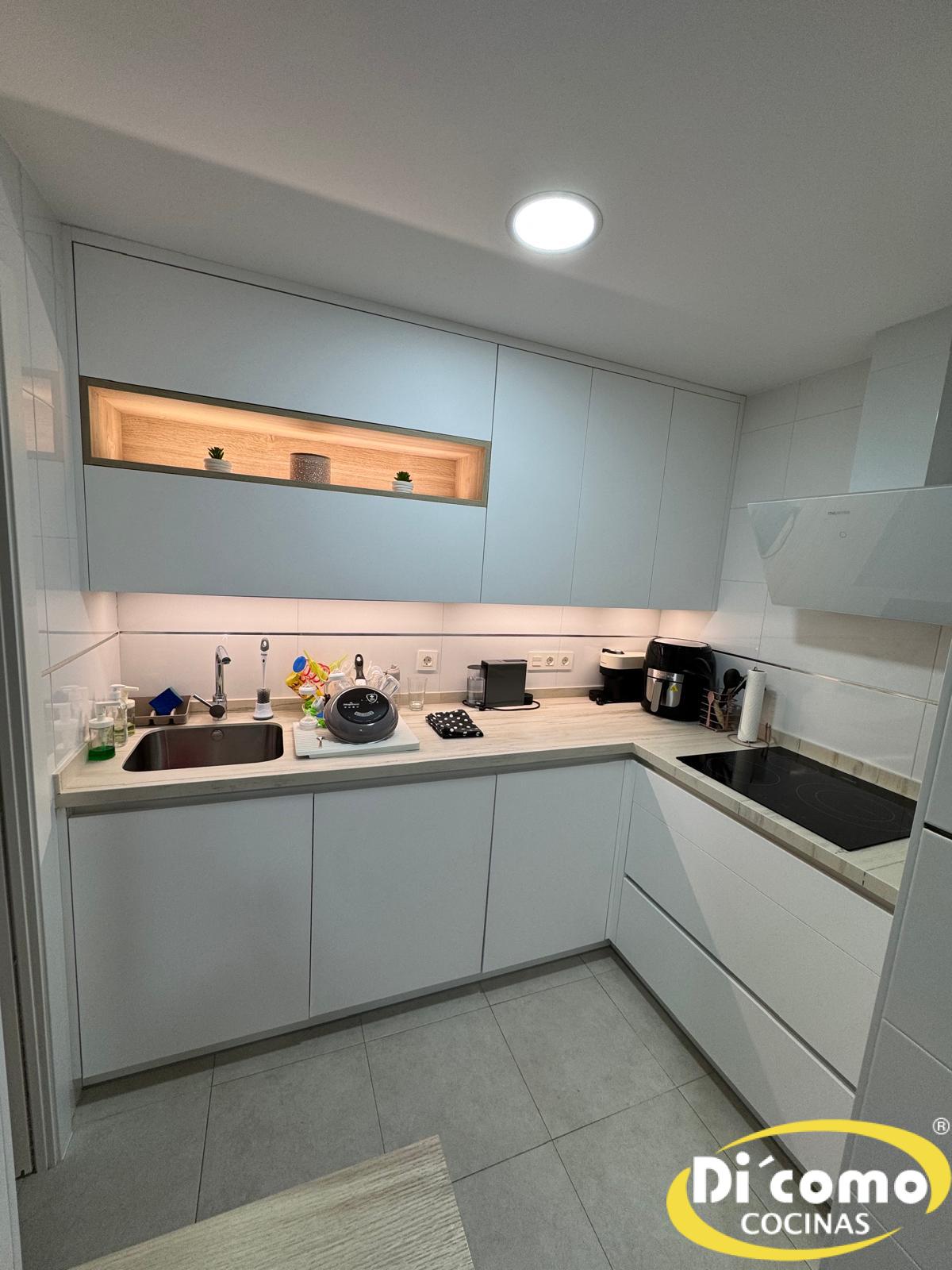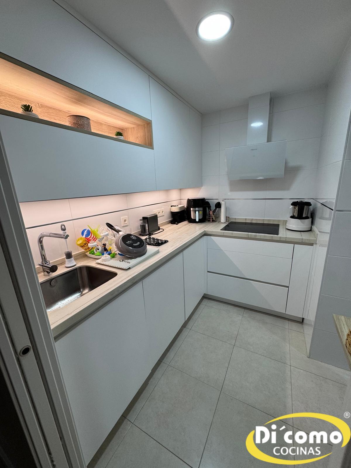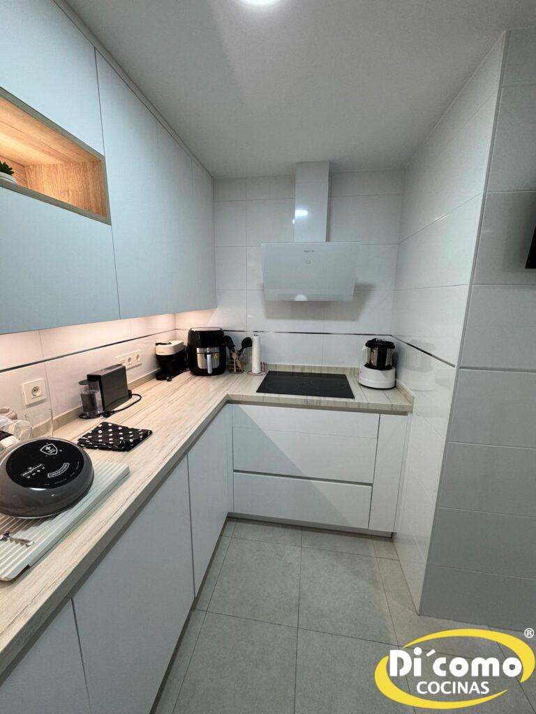 En Di’Como Cocinas estamos orgullosos de presentar nuestra última obra, una cocina que combina la luminosidad de los tonos blancos con la calidez natural de la madera. Este proyecto, diseñado e instalado por nuestro equipo, redefine la experiencia en la cocina, poniendo el foco en la comodidad, la eficiencia y la estética.