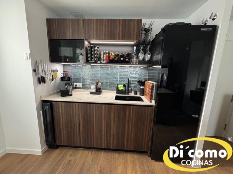 Di’Como Cocinas presenta una propuesta que redefine la convivencia entre cocina y sala. Esta solución combina estética contemporánea con ergonomía pensada para el día a día, logrando un ambiente sobrio, elegante y muy funcional. Cada detalle se ha estudiado para favorecer la interacción social sin perder eficiencia en la tarea culinaria, convirtiendo la cocina en el centro vivo del hogar.